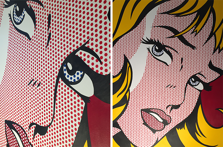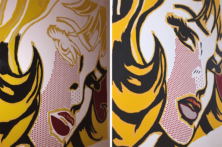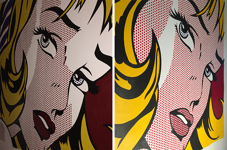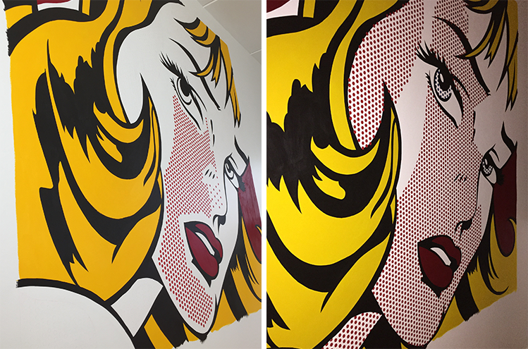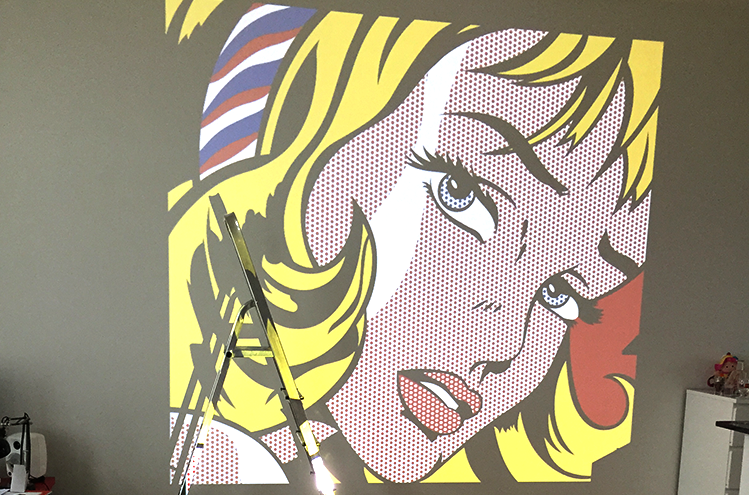260cm x 260cm (8,5ft) mural of Roy Lichtenstein's "Girl with Hair Ribbon" created with paint and adhesive vinyl.